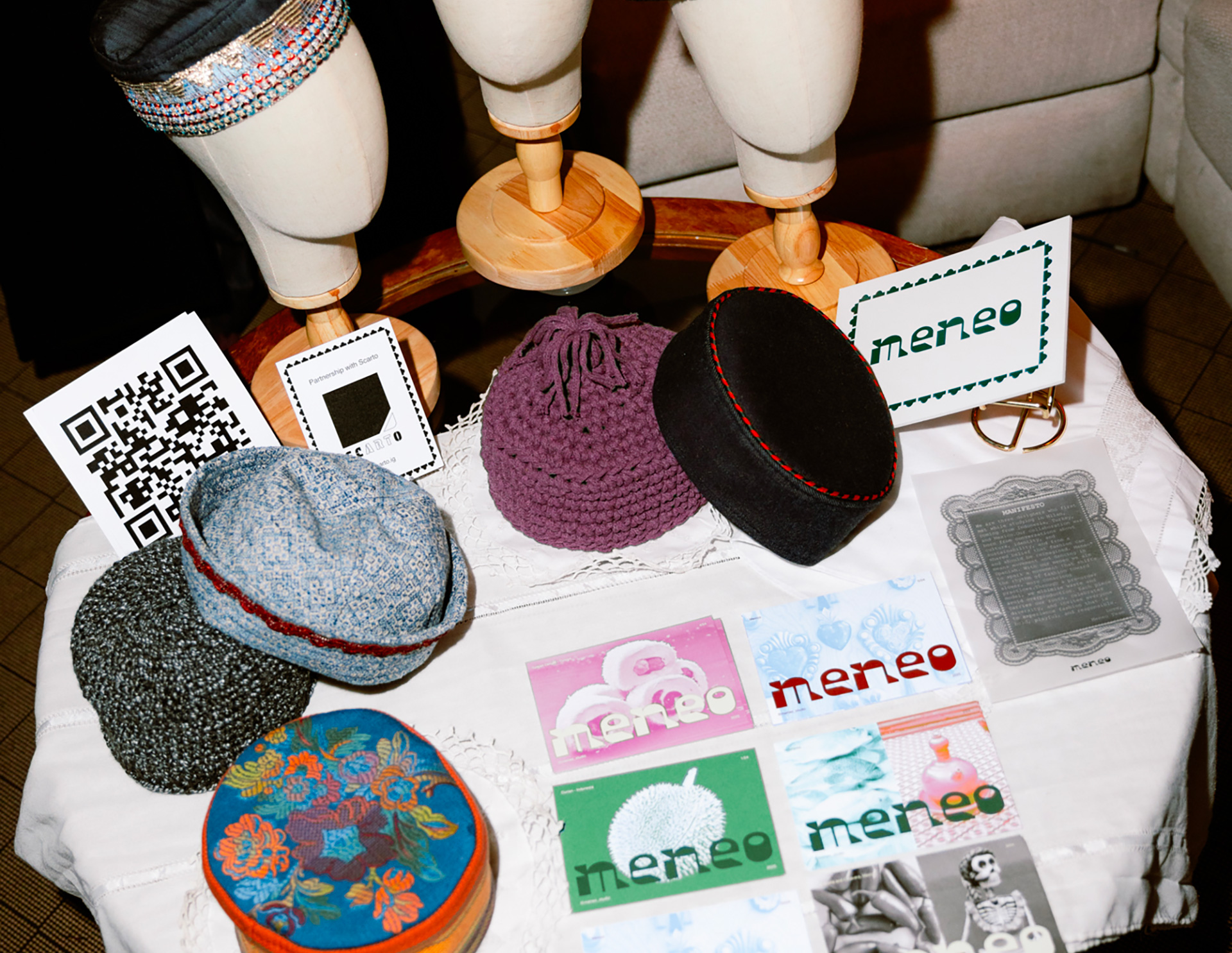 In collaborazione con Scarto di Davide Villa, designer della NABA hanno trasformato i nostri tessuti di scarto in accessori per Meneo, brand indo–turco–messicano.