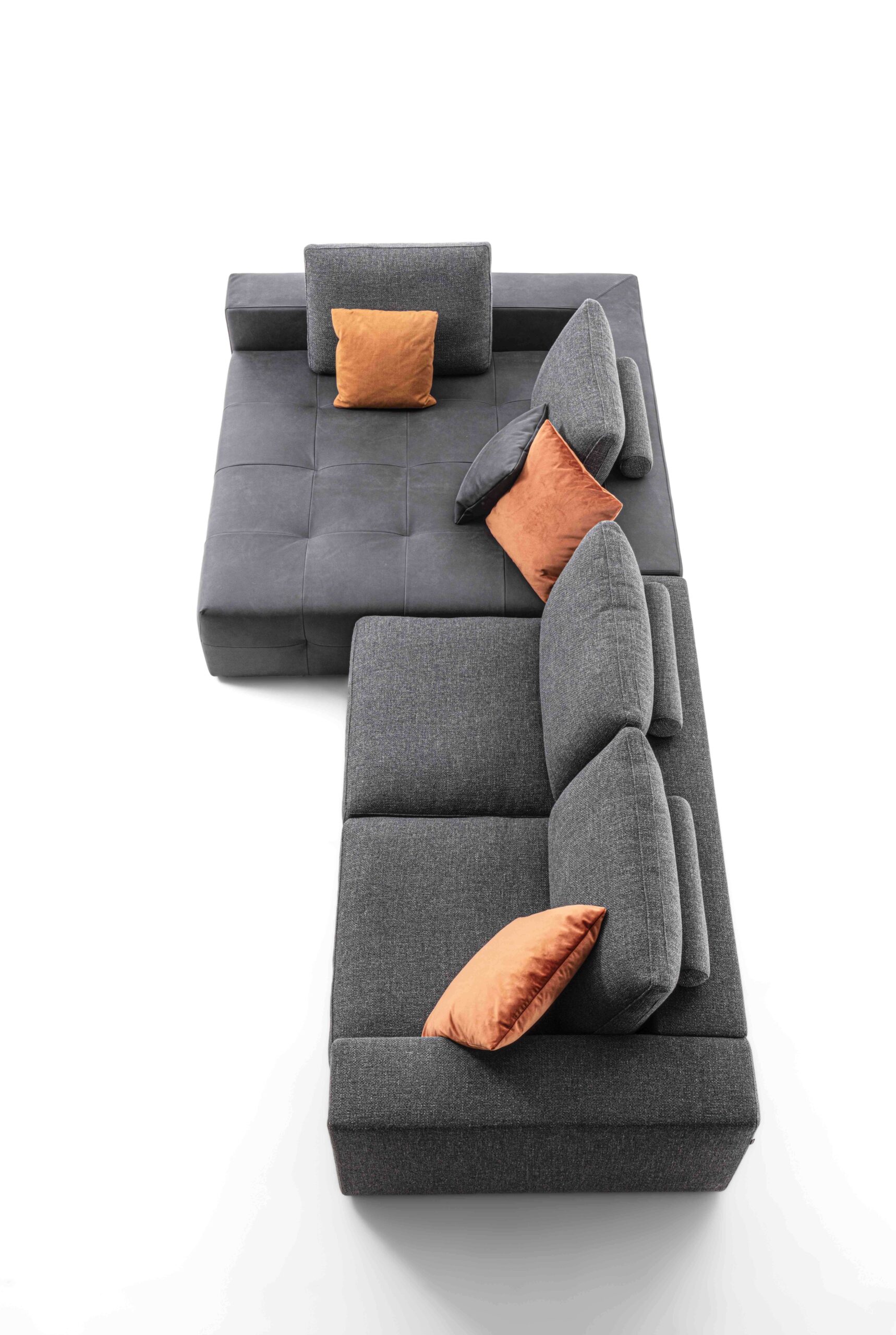 Disponibile in tre diverse profondità (100 / 110 / 120), Butterfly Quilted offre la possibilità di personalizzare ulteriormente la seduta grazie a cuscini decorativi o poggiareni, pensati per adattarsi a ogni esigenza di comfort. La straordinaria modularità del sistema si amplia ulteriormente con l’integrazione di Butterfly Move. Su richiesta, è possibile aggiungere una rete con materasso per un utilizzo ancora più versatile. Le composizioni angolari si realizzano semplicemente accostando gli elementi, offrendo una libertà progettuale unica per soddisfare ogni esigenza abitativa.