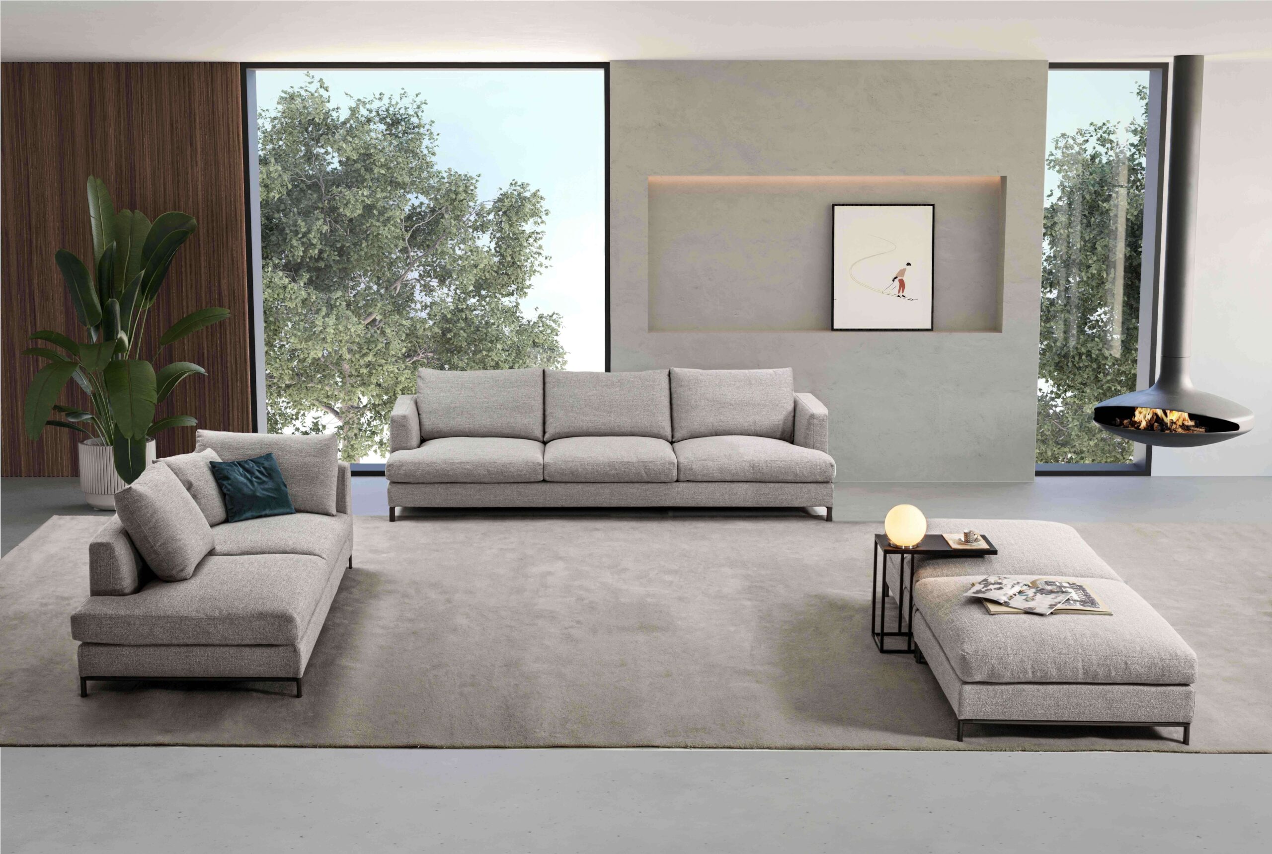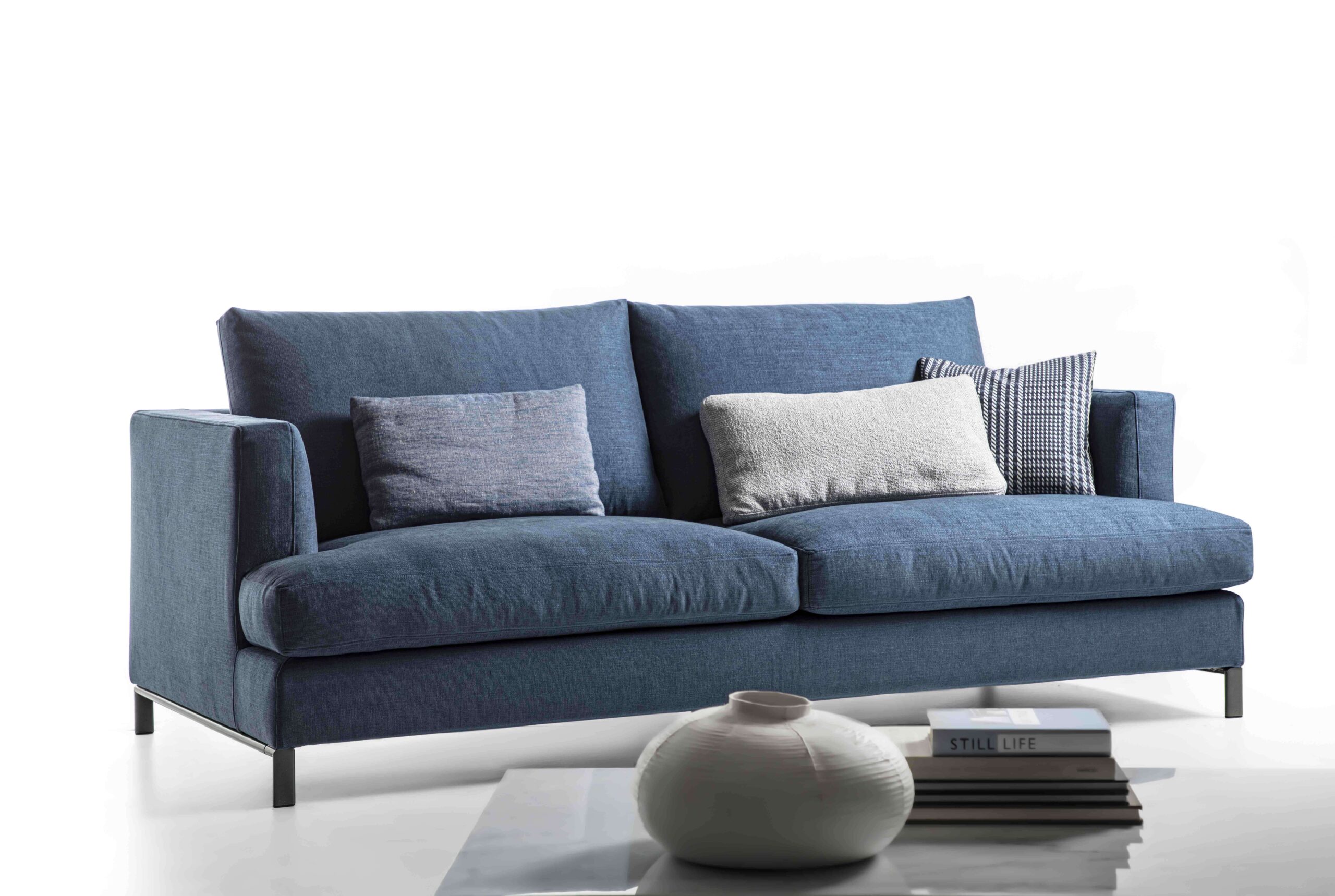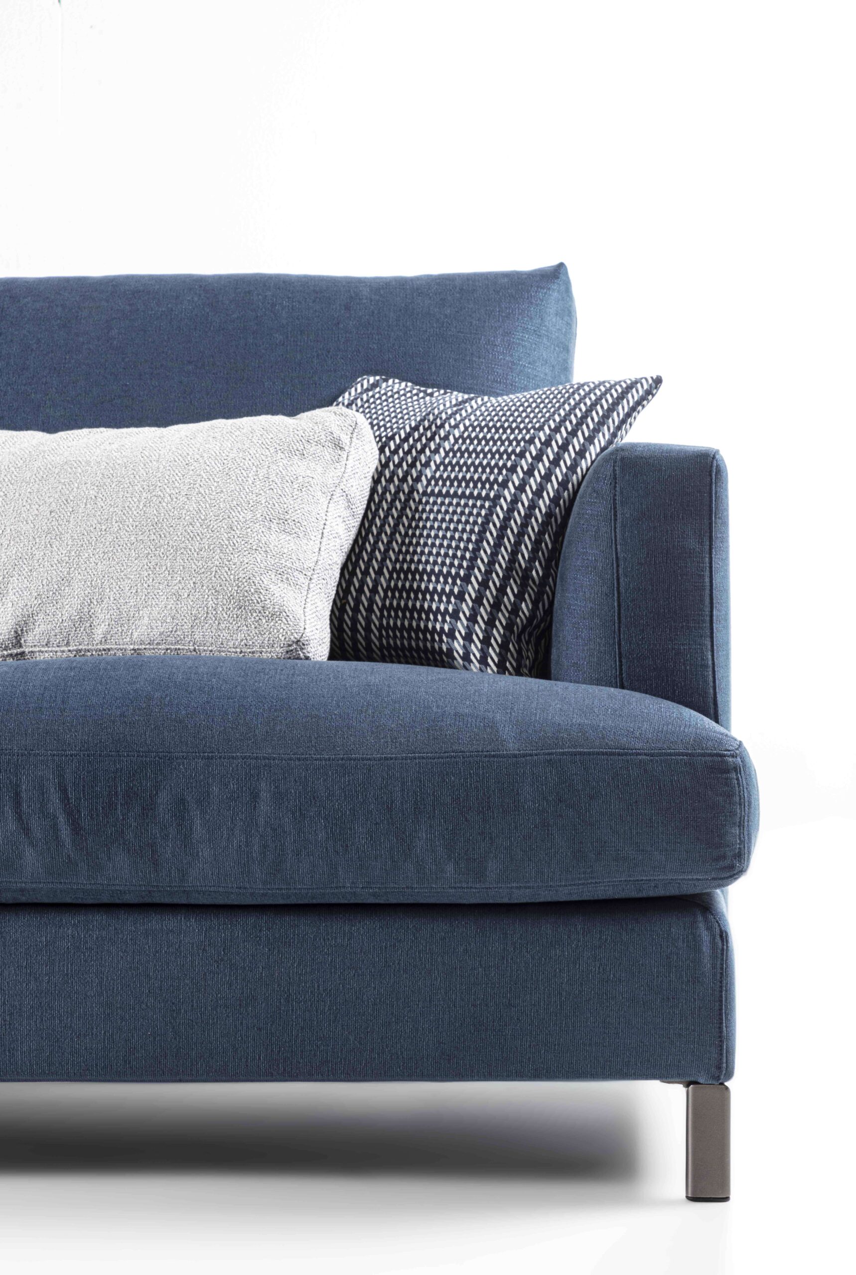 Le linee sinuose ed eleganti del divano Dallas si esprimono attraverso un design che fa della morbidezza il suo tratto distintivo. Questo progetto si distingue per la scelta di armonizzare forme curve e accoglienti in modo sofisticato. I braccioli arrotondati, si integrano con il sedile, a sua volta impreziosito da un trapuntino in vera piuma d’oca, che amplifica la sensazione di comfort e avvolgenza.
