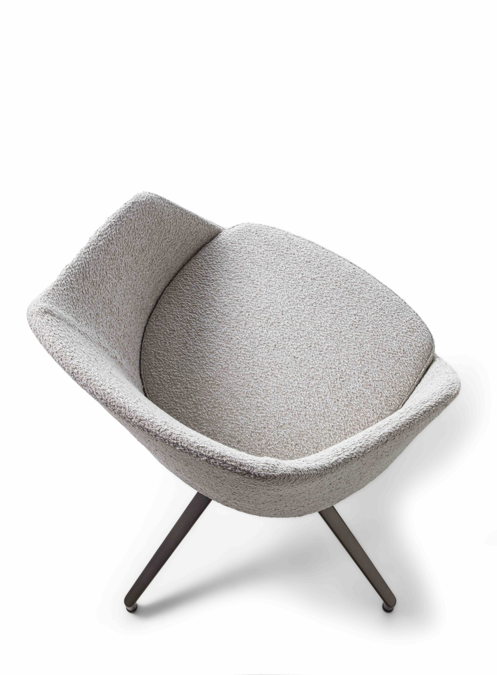 Le sue linee avvolgenti e il design curato si integrano perfettamente nell’estetica degli spazi contemporanei, ulteriormente valorizzati dalla presenza di una base raffinata realizzata in fusione di alluminio verniciato in una calda tonalità bronzo, che aggiunge un tocco di eleganza senza tempo al prodotto.