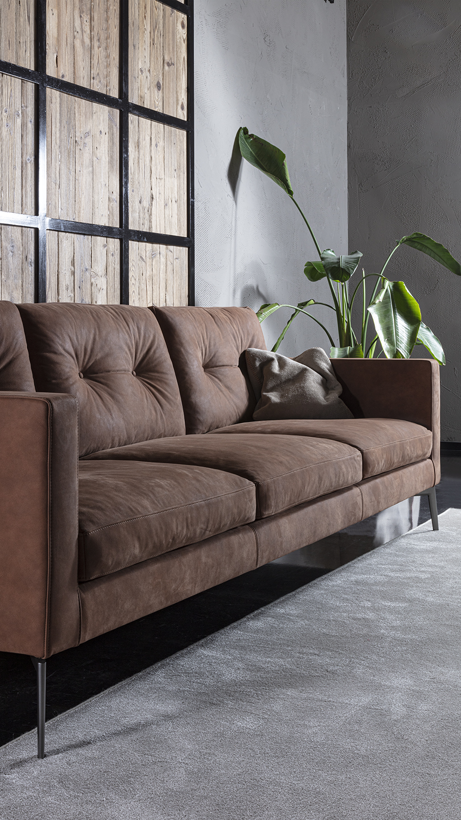 La creazione di Fire rappresenta una sfida di equilibrio tra proporzioni, materiali e design, mirata a garantire una seduta confortevole in dimensioni ridotte. Con soli 95 cm di larghezza, il divano mantiene le stesse proporzioni degli altri modelli della gamma.