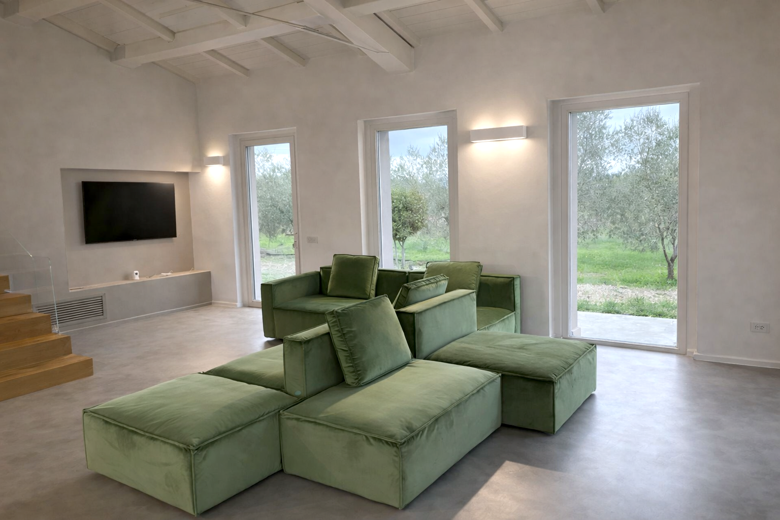 Per questo progetto in Toscana, nella splendida provincia di Grosseto, abbiamo utilizzato il divano modulare Blanc in velluto idrorepellente, perfetto per vivere la zona giorno con stile e senza pensieri. La scelta del tessuto idrorepellente garantisce una manutenzione semplice e veloce, ideale per una casa immersa nel verde, dove l’interno e l’esterno si incontrano ogni giorno.